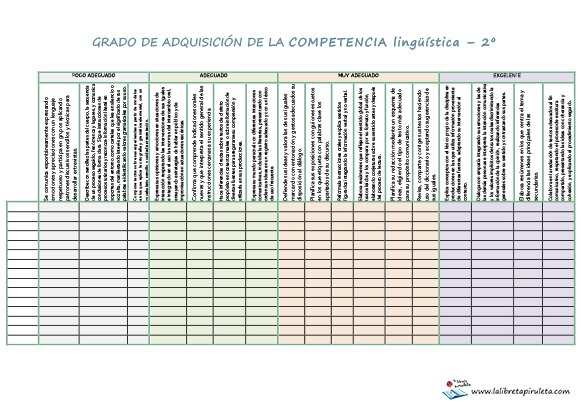 Hojas de registro para evaluar las competencias – 2º de Primaria