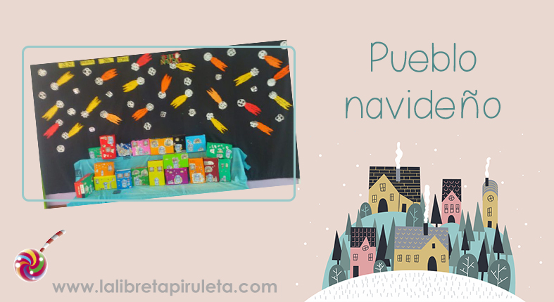 Las casas se hicieron ayudándonos de un papel de regalo, a modo de collage, que tenía elementos de las casas y nos recordaban a los personajes del cuento. En el cuento, había estrellas fugaces y en la cola, pondríamos nuestros mensajes navideños y de buenos deseos.