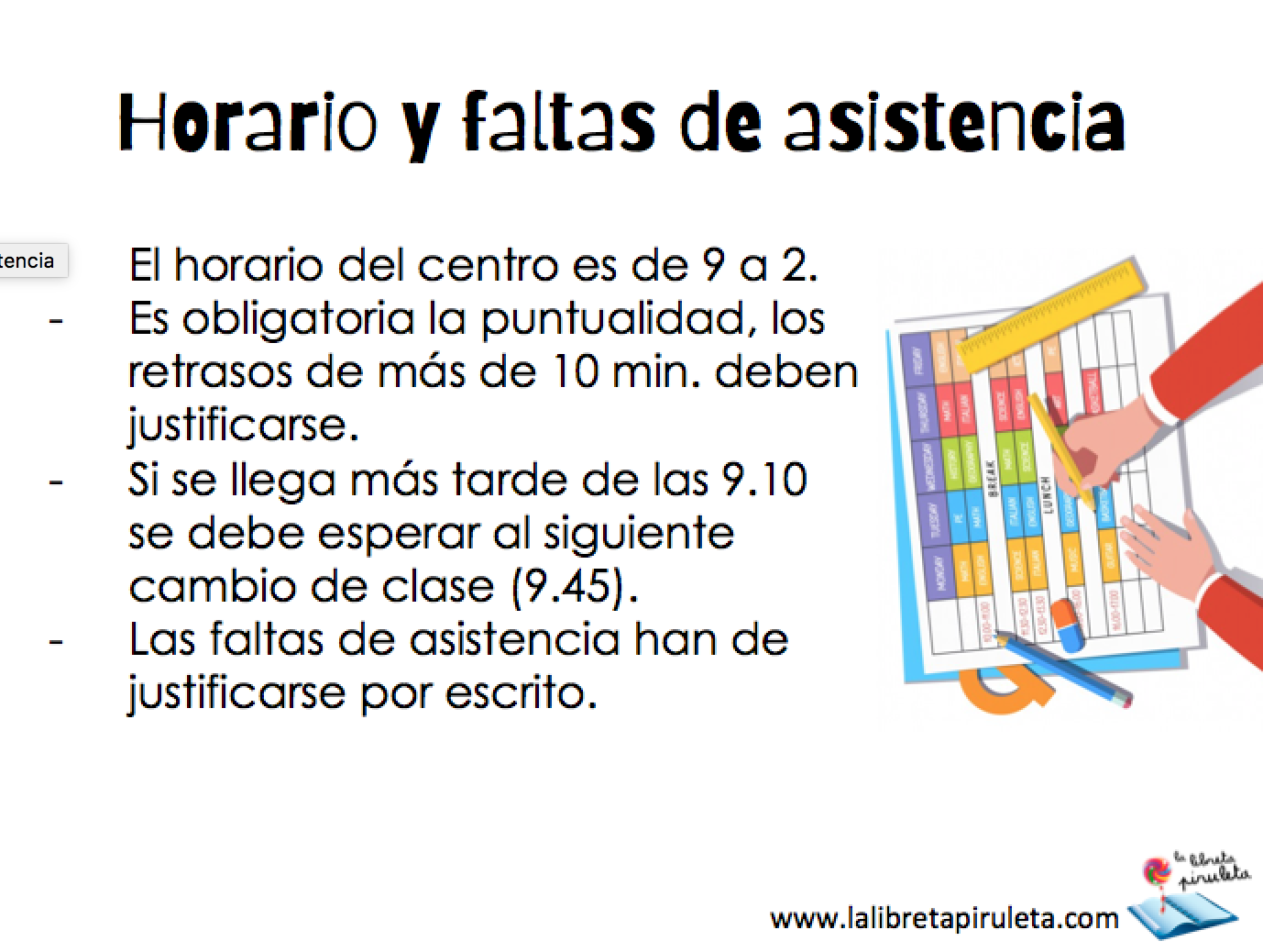 Es evidente que la presentación no ha de leerse y el lenguaje a utilizar debe ser claro y cercano. Se intentará establecer durante la reunión un vínculo positivo con las familias, de tal manera, que se forme un gran equipo educativo.