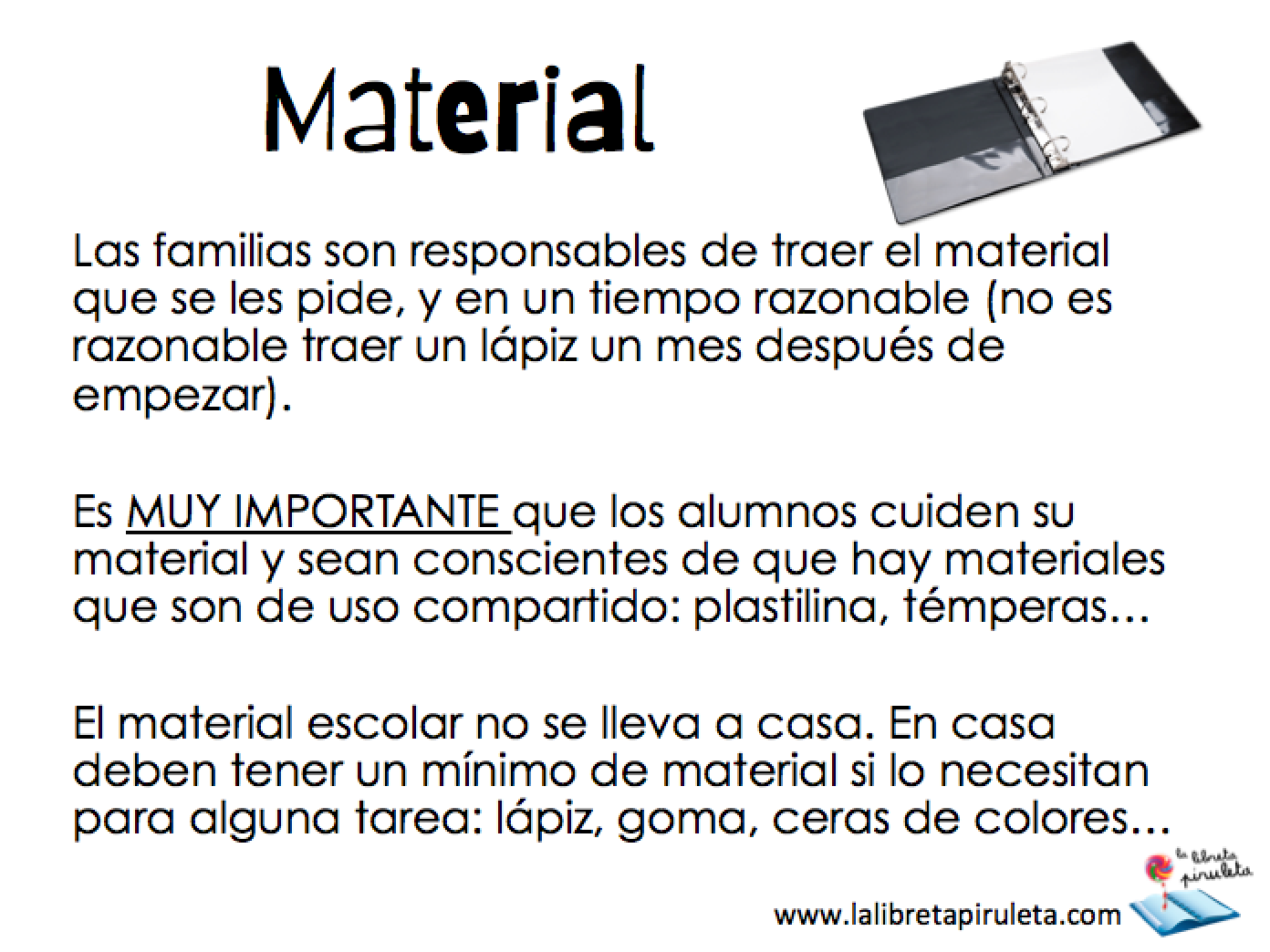 Hoy en día estamos inmersos en una sociedad que cuida mucho el detalle donde impera la imagen sobre el texto. Dicho con otras palabras, la información nos entra por los ojos más que por otro sentido. Para facilitarnos las cosas en este momento tan crucial del inicio del curso escolar, proponemos una presentación editable para que cualquier docente pueda adecuarlo a sus necesidades y obtenga un éxito seguro a la hora de fortalecer las relaciones entre la familia y la escuela.
