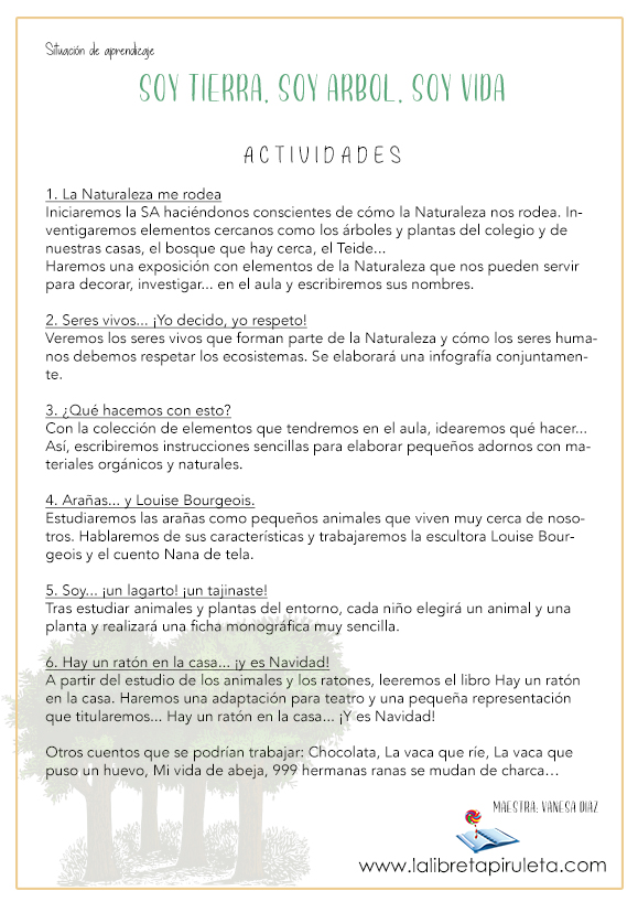Situación de aprendizaje: Soy tierra, soy árbol, soy vida, para trabajar la Naturaleza en conexión con varios cuentos y la escultora Louise Bourgeois.